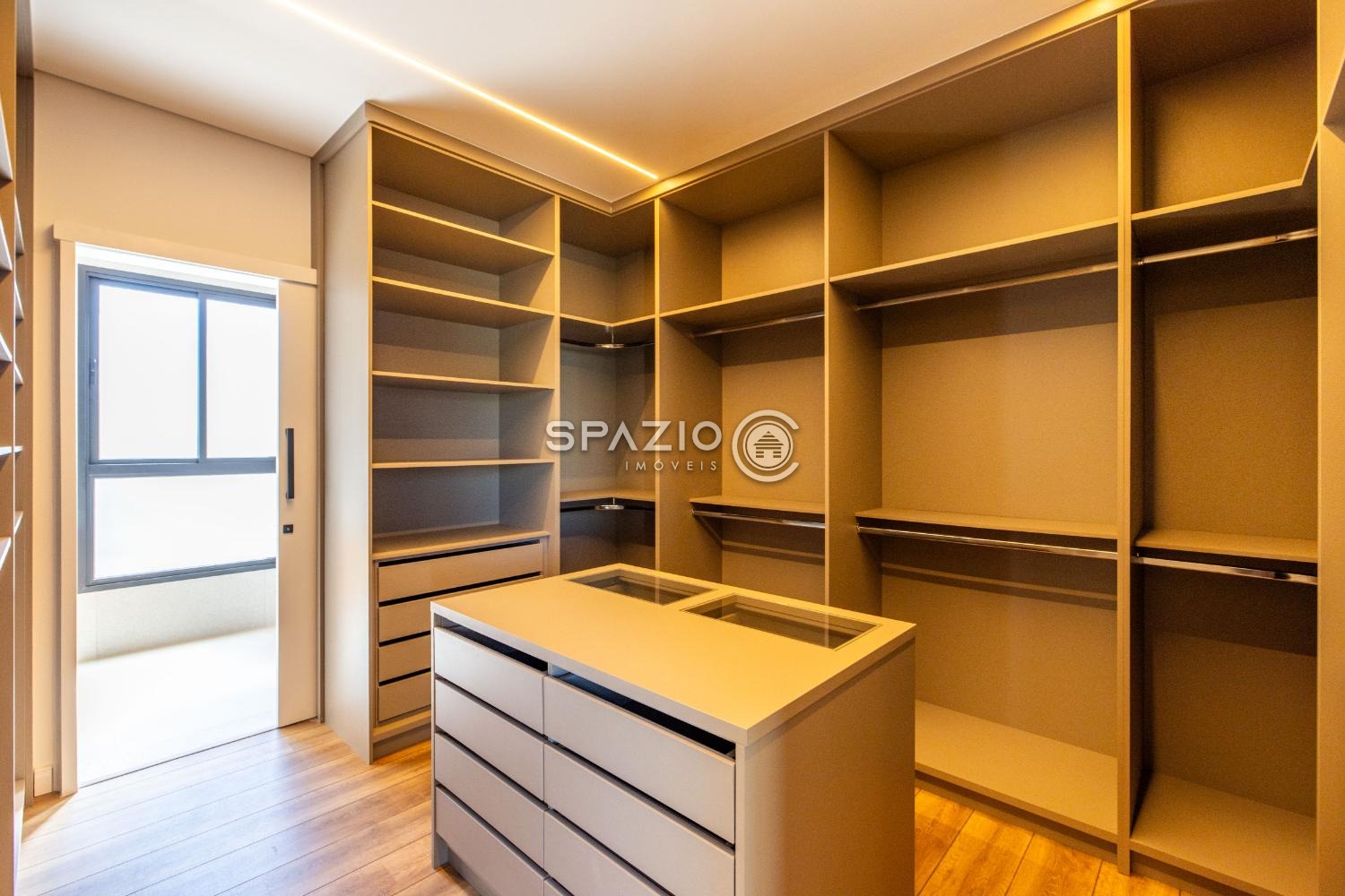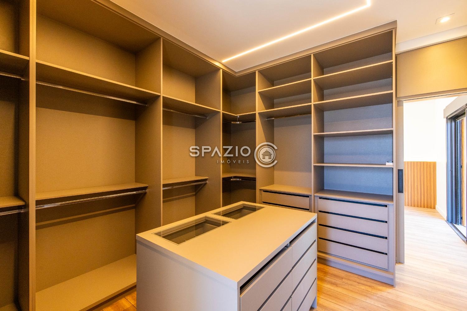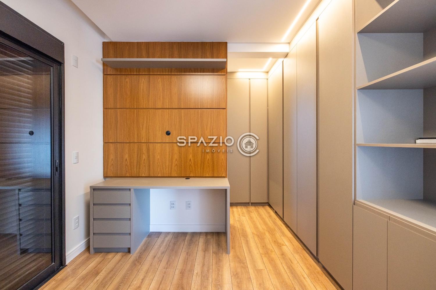 Os ambientes se conectam de forma fluida ao espaço gourmet fechado, ideal para receber com estilo. O imóvel ainda conta com um escritório privativo, com possibilidade de conversão em quinta suíte, trazendo versatilidade ao layout.